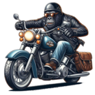 バイクに乗っている姿が目に焼き付くことでしょう。この鮮やかなイメージでは、ゴリラがまるでバイクの一部のように見えます。