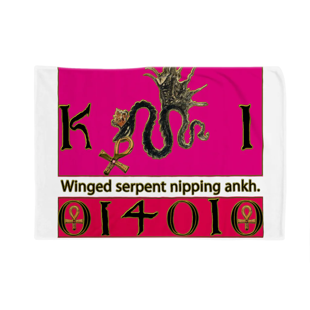PALA's SHOP cool、シュール、古風、和風、ねこ、ワンちゃん、ウサギさん、野鳥。のアンクを銜えた翼のある蛇-03 Blanket :size (90cm x 65cm)