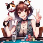 ポーカーをするキングペンギンは、優雅な動きで手札を見る。